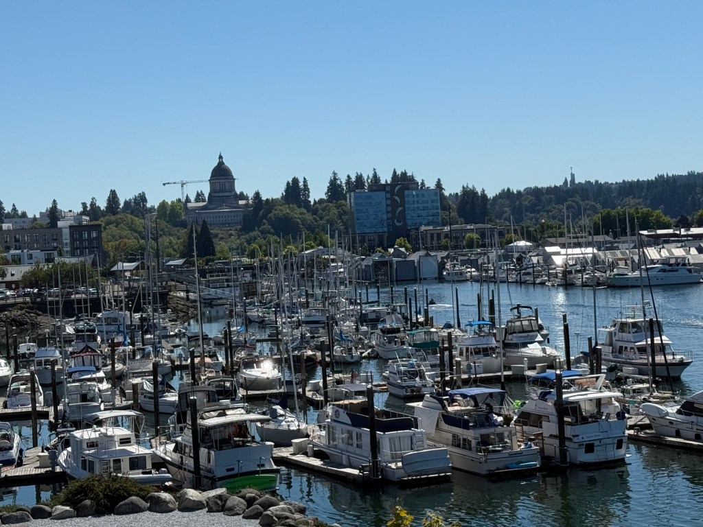 Port of Olympia was my favorite place we went locally around Olympia. With parks for the kids, a boardwalk, water access and a plethora of shops and restaurants, it is such a cute little place to hang out for an afternoon! Timber resources are what fuels the economy in the area, and during WWII, Port of Olympia hosted ship building facilities and served as a transport hub for lend-lease cargo. The waters there are so beautiful!